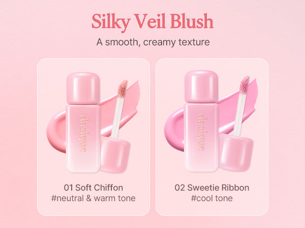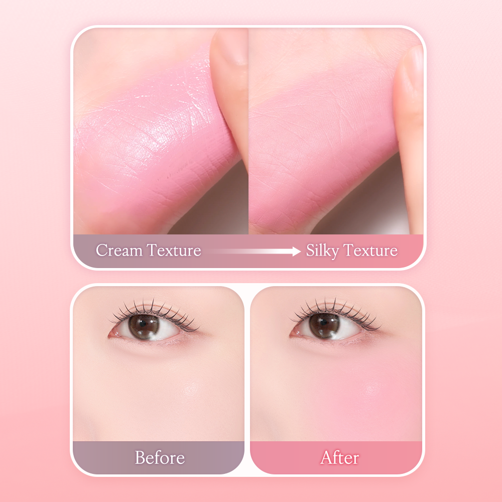 A silky cream texture that gently tints your cheeks with a pink hue, leaving a soft, veil-like matte finish.