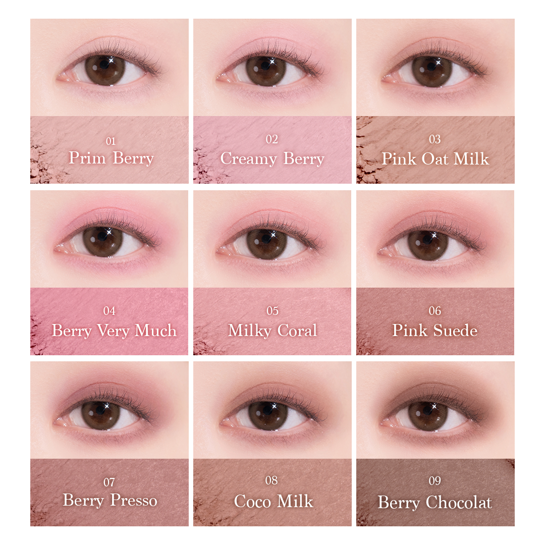 A soft berry palette with delicate, milky tones for a gentle look.
