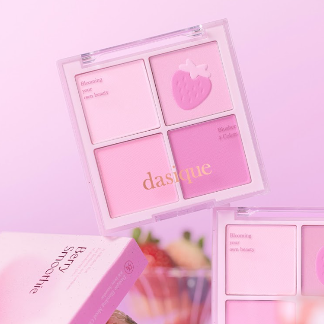 Inspired by the luscious and refreshing hues of a strawberry smoothie, this palette features four popping shades that will add a burst of color to your cheeks.